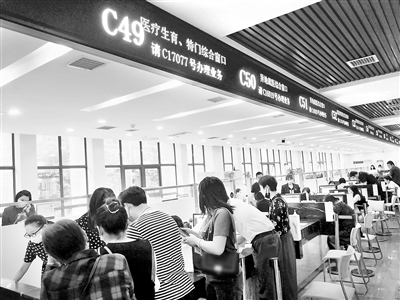衡陽市醫(yī)保局優(yōu)化審批流程,精減審批材料,壓縮審批時限,讓群眾一件事一次辦。圖為群眾在市政務(wù)服務(wù)中心醫(yī)保特殊病種門診專窗辦理業(yè)務(wù)。 李建平 攝