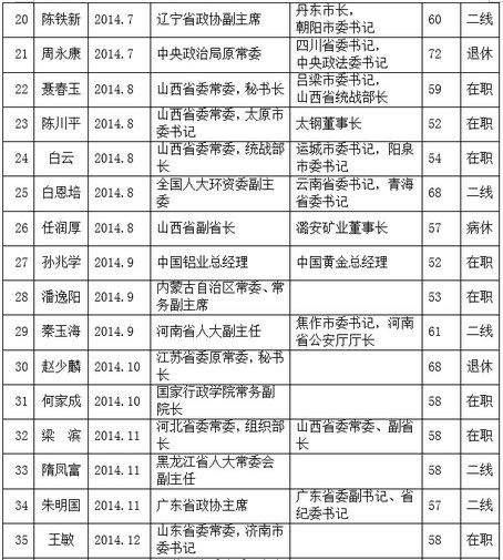 那么,“打虎放緩”是大家的錯(cuò)覺(jué)嗎?對(duì)比表格可以發(fā)現(xiàn),中央紀(jì)委在公布“老虎”時(shí),2014年曾經(jīng)多次出現(xiàn)過(guò)一天同時(shí)公布二至三人落馬的情況;而2015年,僅在兩會(huì)閉幕當(dāng)天出現(xiàn)過(guò)一天同時(shí)公布仇和、徐建一兩人落馬的情況,在發(fā)布的密集程度上,的確不如2014年勢(shì)頭“猛”。但仔細(xì)分析原因可以發(fā)現(xiàn),2014年同日公布的“老虎”往往是窩案、串案,如山西的塌方式腐敗導(dǎo)致杜善學(xué)、令政策同日公布,聶春玉、陳川平同日公布,任潤(rùn)厚、白云同日公布;以及趙少麟、何家成同日公布等。而2015年,沒(méi)有再出現(xiàn)山西塌方式腐敗這樣的極端案例,因此同日密集公布“老虎”的情況大為減少,這是合乎常理的。