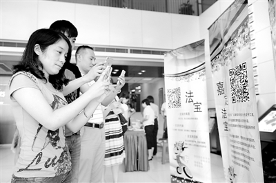 上海市嘉定區(qū)結(jié)合全區(qū)村(居)“兩委”換屆工作,舉辦“廉‘接’你我他”主題宣傳活動,通過黨規(guī)黨紀(jì)專題教育培訓(xùn)、村(居)干部廉潔履職巡回講座、廉政知 識競賽等方式,加強(qiáng)對農(nóng)村基層干部廉潔履職的教育引導(dǎo)。圖為8月18日,該區(qū)村(居)干部通過手機(jī)掃描微信二維碼參加廉政知識測試。余臻 攝