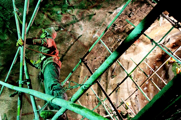 對于隧道裸露的面,檢查必須像“排雷”般細(xì)心。地鐵人在檢查中將松動(dòng)的石塊敲落,避免石塊掉落傷人,這樣爬上爬下多少次,恐怕他們自己也數(shù)不清了。