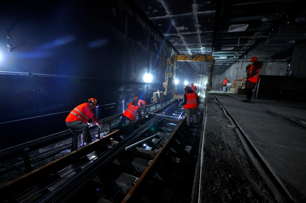 安全是地鐵建設(shè)的重中之重。地鐵人反復(fù)對軌道進(jìn)行軌距測量和矯正,確保鋼軌間距始終保持一致,保障車輛通行安全。軌距測量和矯正需要地鐵人齊心協(xié)力、密切配合,長期的協(xié)同工作練就了他們之間的默契。