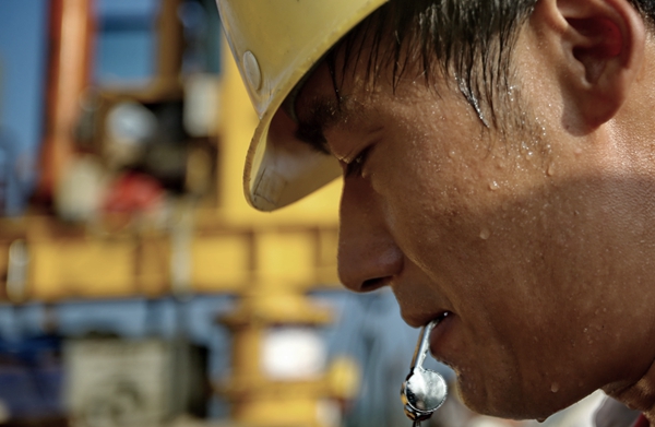地鐵工作苦中亦有樂。繁重的工作之余,在鏡頭前的地鐵人忘記了疲勞,露出了樸實(shí)的笑容。