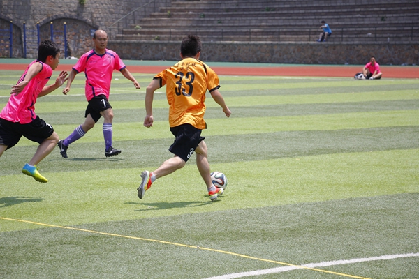 脫下厚重的工作服,他們是一群充滿活力、蓬勃朝氣的小伙子。馳騁在綠茵場上,盡情地?fù)]灑著青春的汗水。