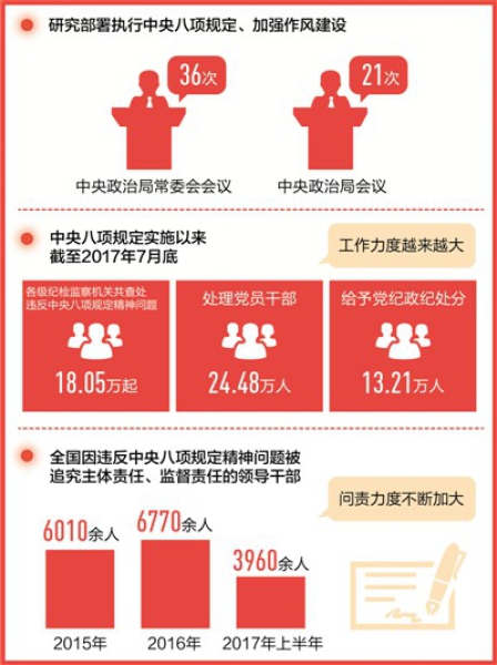 5年來,無論是在改進(jìn)調(diào)查研究、精簡會議活動、精簡文件簡報方面,還是在規(guī)范出訪活動、改進(jìn)警衛(wèi)工作等方面,黨中央都認(rèn)真貫徹執(zhí)行八項規(guī)定,推動作風(fēng)建設(shè)取得扎實成效。