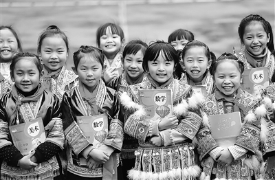 近年來,廣西把教育扶貧作為阻斷貧困代際傳遞的治本之策,不斷補齊教育短板。圖為廣西融水苗族自治縣桿洞鄉(xiāng)中心小學的孩子們喜得新書。新華社記者 黃孝邦 攝