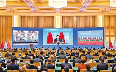 金秋時(shí)節(jié)的北京,秋高氣爽,云淡風(fēng)輕。主會(huì)場(chǎng)人民大會(huì)堂金色大廳內(nèi),燈光璀璨,鮮花綻放。中華人民共和國國旗和聯(lián)合國旗交相輝映,聯(lián)合國各會(huì)員國國旗組成的旗陣氣勢(shì)恢宏。