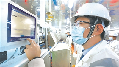 “國(guó)信1號(hào)”養(yǎng)殖技術(shù)人員正在設(shè)置有關(guān)參數(shù)。