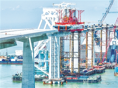 目前,伶仃洋大橋已進入主纜施工階段。非通航孔橋箱梁架設已超過60%,預計今年10月可完成全線非通航孔橋箱梁的架設工作。