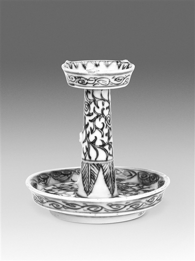“小白礁1號”出水的清景德鎮(zhèn)窯青花纏枝花卉紋瓷燈盞。