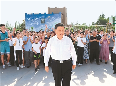 7月12日至15日,習(xí)近平在新疆維吾爾自治區(qū)黨委書記馬興瑞、自治區(qū)政府主席艾爾肯·吐尼亞孜陪同下,先后來到烏魯木齊、石河子、吐魯番等地,深入學(xué)校、國際陸港區(qū)、社區(qū)、博物館、農(nóng)村和新疆生產(chǎn)建設(shè)兵團等進行調(diào)研。