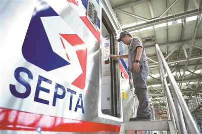 今年以來(lái),天津中車(chē)唐車(chē)軌道車(chē)輛有限公司制造的4輛城際動(dòng)車(chē)組已分兩批發(fā)運(yùn)北美地區(qū),公司預(yù)計(jì)下半年還將發(fā)運(yùn)約20輛城際動(dòng)車(chē)組。圖為7月14日,天津中車(chē)唐車(chē)軌道車(chē)輛有限公司工作人員在查看車(chē)體。新華社記者 李然 攝