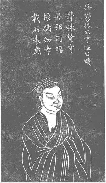 五百名賢的石刻畫像上,均有十六字的評價,這些贊語表明了他們被選入名賢的理由。三國時代從蘇州走出了一位賢明太守,他的名字叫陸績,其贊語為“郁林賢守,吳邦所瞻。懷橘知孝,載石表廉。”懷橘知孝講的是陸績童年時的故事,載石表廉講的是陸績成年后為官的故事。