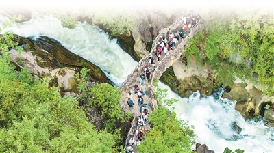 “五一”期間,游客在給城市、景區(qū)帶來人氣的同時(shí),越來越多地感受到這些城市和景區(qū)的精細(xì)化管理和人性化服務(wù)。圖為游客在貴州省安順市天星橋景區(qū)游覽。 新華社發(fā)
